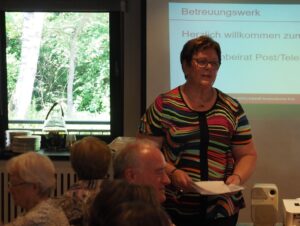 Helga Thiel, die neu gewählte Sprecherin des Seniorenbeirates (SBR) des Betreuungswerks (BEW) begrüßt die Anwesenden ganz herzlich und freut sich dass der Treff so gut besucht ist. Als Einstieg wird der Imagefilm… des BEW zum 125 jährigen bestehen gezeigt.