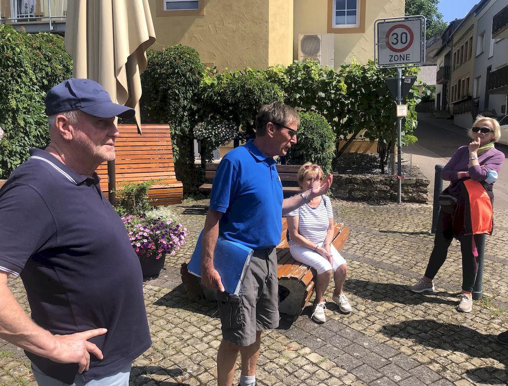 Nach kurzer Begrüßung der 16 Teilnehmer*innen durch die SBR- Sprecherin Helga Thiel, gab unser Schriftführer Erwin Löwenbrück, der die Tour organisiert hat, kurze Erläuterungen zum Organisatorischen und der Wanderroute. Er begrüßte den Wein- und Kulturführer Gerd Müller, der die Gruppe bei herrlichem Sonnenschein Fach- und sachkundig durch Nittel und die Nitteler Weinberge, entlang der Kalkfelsen zum sogenannten Nitteler Fels, der „Gotteshand“ führte. Unser Wissen über den Weinbau, die Arbeit im Weinberg und die Rebsorten wurde vertieft.