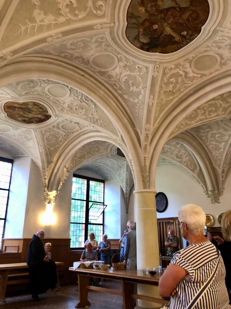 Abschließend ist hervorzuheben, dass der in 11 Jahren für 3,4 Millionen Euro bemerkenswert teilsanierte frühgotische Kreuzgang mit seinen kunstvoll wieder hergestellten Säulen und Kapitellen großes Erstaunen hervorrief. Ebenso beeindruckte das riesige Dormitorium (früherer Schlafsaal), welches heute die mehrere Tausend Exemplare umfassende Bibliothek beherbergt. Auch die große Sakristei und das Refektorium (klösterlicher Speisesaal) mit seiner malerischen Stuckdecke wurden bestaunt.