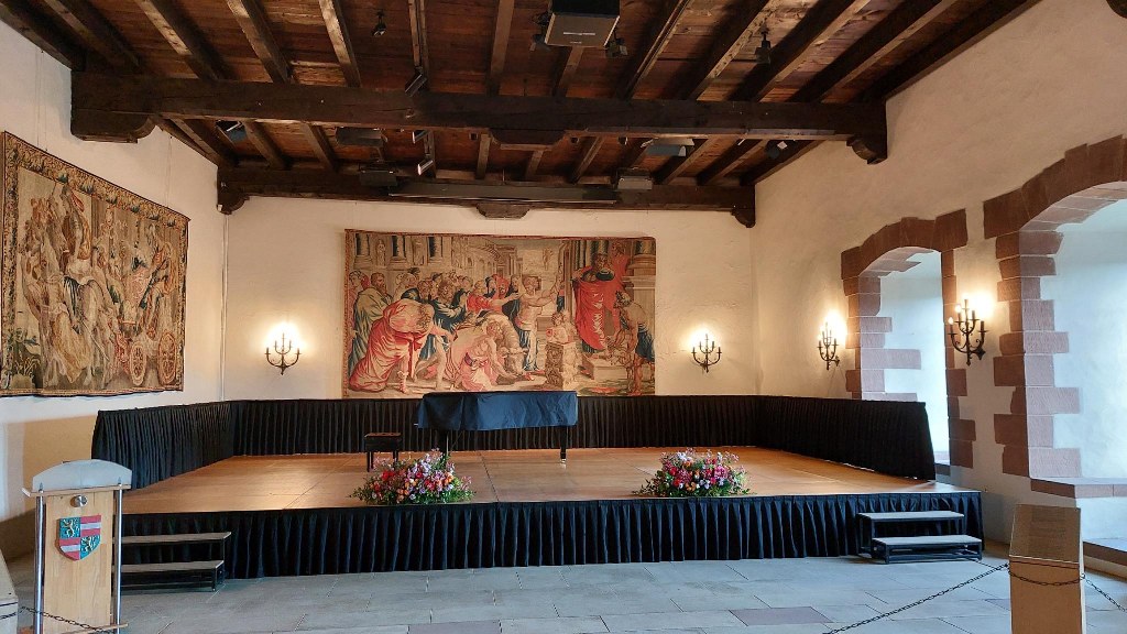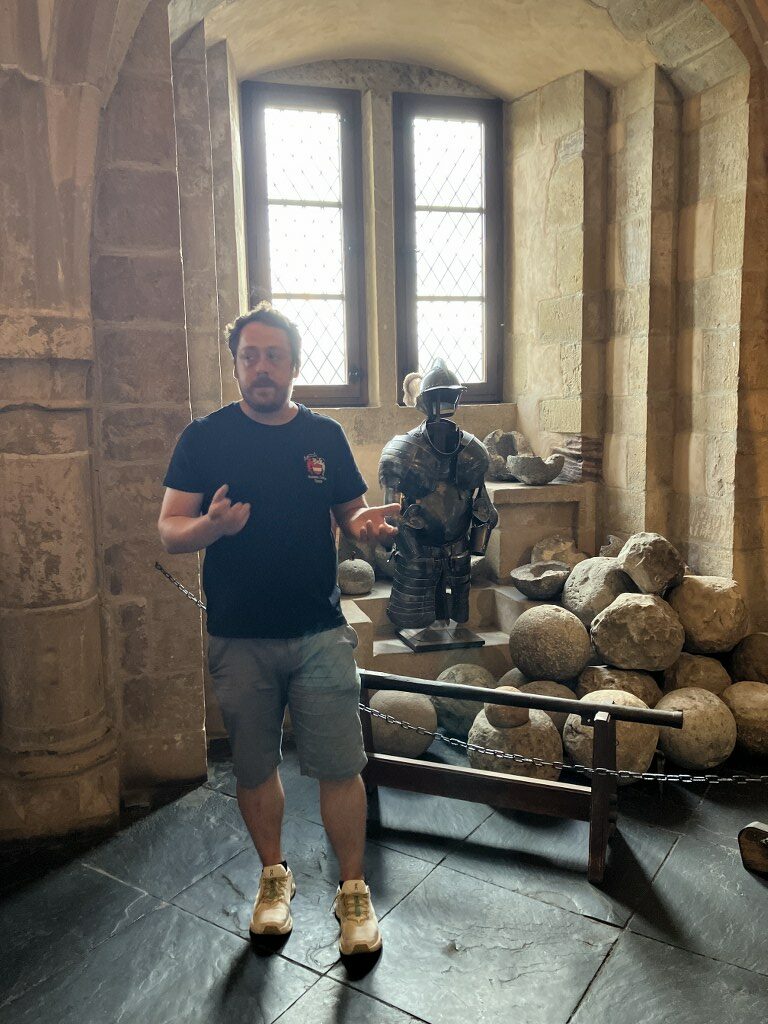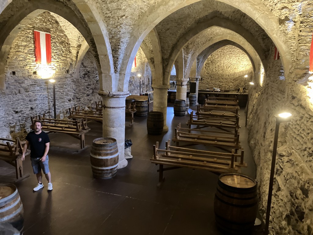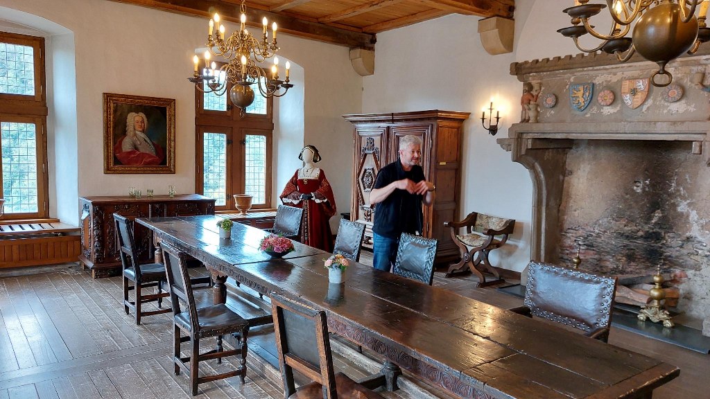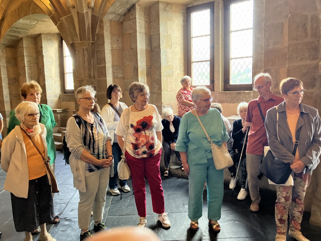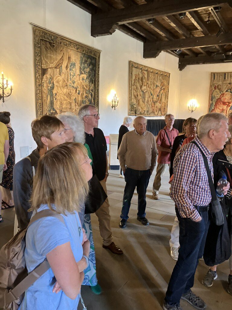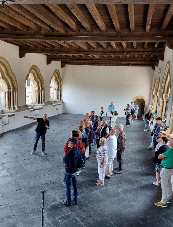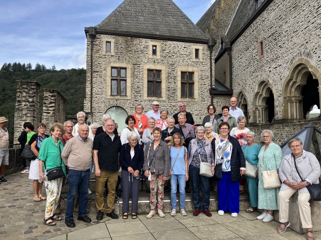 Unser erstes Ziel war die beeindruckende Burg Vianden, die majestätisch über der gleichnamigen Stadt und dem Ourtal thront. Nach der Ankunft hatten wir 1,5 Stunden Zeit, um das einst zerstörte und wieder aufgebaute Schloss unter fachkundiger Führung zu besichtigen. Die Teilnehmer*innen der 2 Gruppen waren beeindruckt von der Architektur und den fantastischen Ausblicken ins Tal.